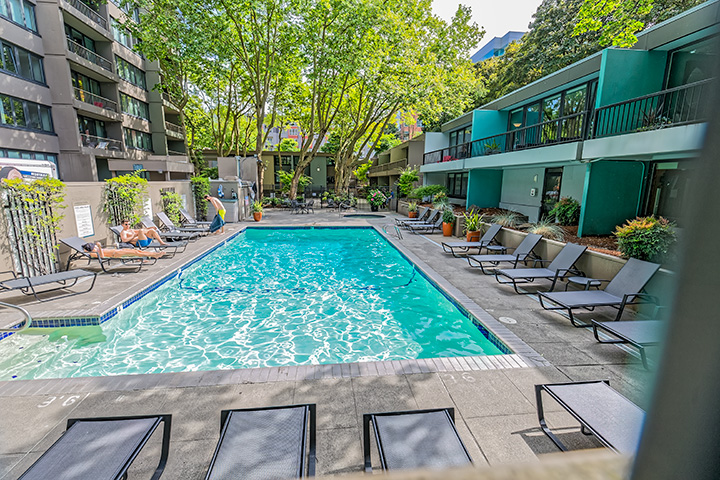 Approximately 600 square feet. Beautifully updated & meticulously maintained with expansive views of city, river & 3 of the region’s most notable volcanoes. This 15th floor unit features SS appliances, granite counters, stainless top island, floor to ceiling windows, hardwoods, new wool carpet, AC & built-ins. Large 6×25 private covered terrace provides an additional 150 sqft of outdoor, wood decked living space Deeded parking/storage. Streetcar/MAX at your doorstep. Amenities include complimentary laundry, pool, hot tub. Call 503.810.1095 for a showing today. MLS# 20194547